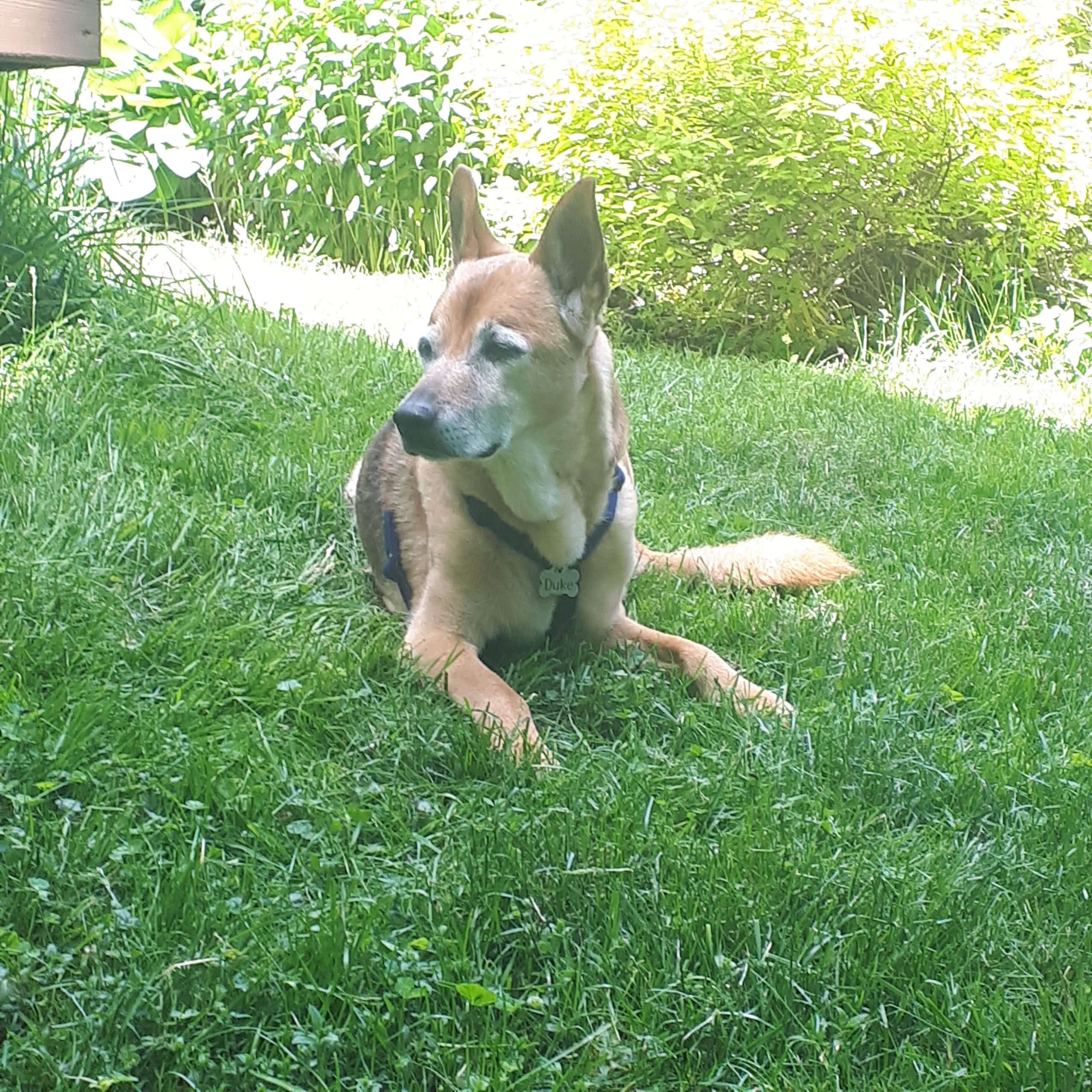 On May 12, 2025, Duke crossed the rainbow bridge, peacefully at home, wrapped in our arms and our love. Craig and I are heartbroken but consoled by the precious gift that Duke was, and by all of the beautiful memories we created together.