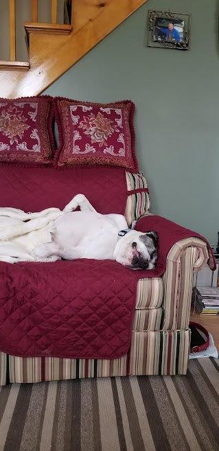 I remember the day we got Ella three and a half years ago. She was so nervous. It was a Friday and by Monday she brought me her ball to play. She loved to play and still tried two weeks ago but really couldn’t. She loved life, played a lot and ate a whole lot. She pretty much ate anything we gave her. She used to sleep with me and only took up half the bed. She new what side was hers. She was family to us. I miss seeing her and taking her out. When I am on the deck, I picture her as she’s going amongst our trees here.