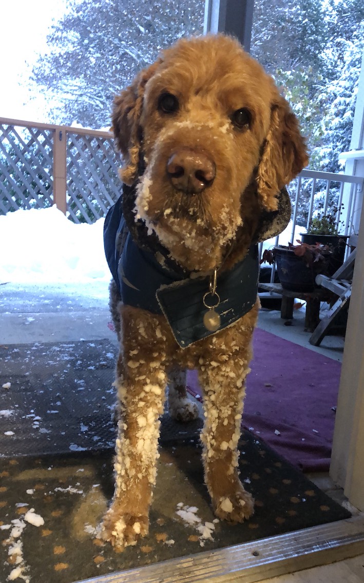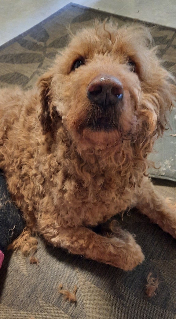 Kyle, the giant Doodle who stole our hearts with his gentle soul, came to the Victoria ElderDog Pawd as a foster when his person passed away. Cowichan ElderDog volunteers came together to help Kyle with his rescue, clean up and rehabilitation.